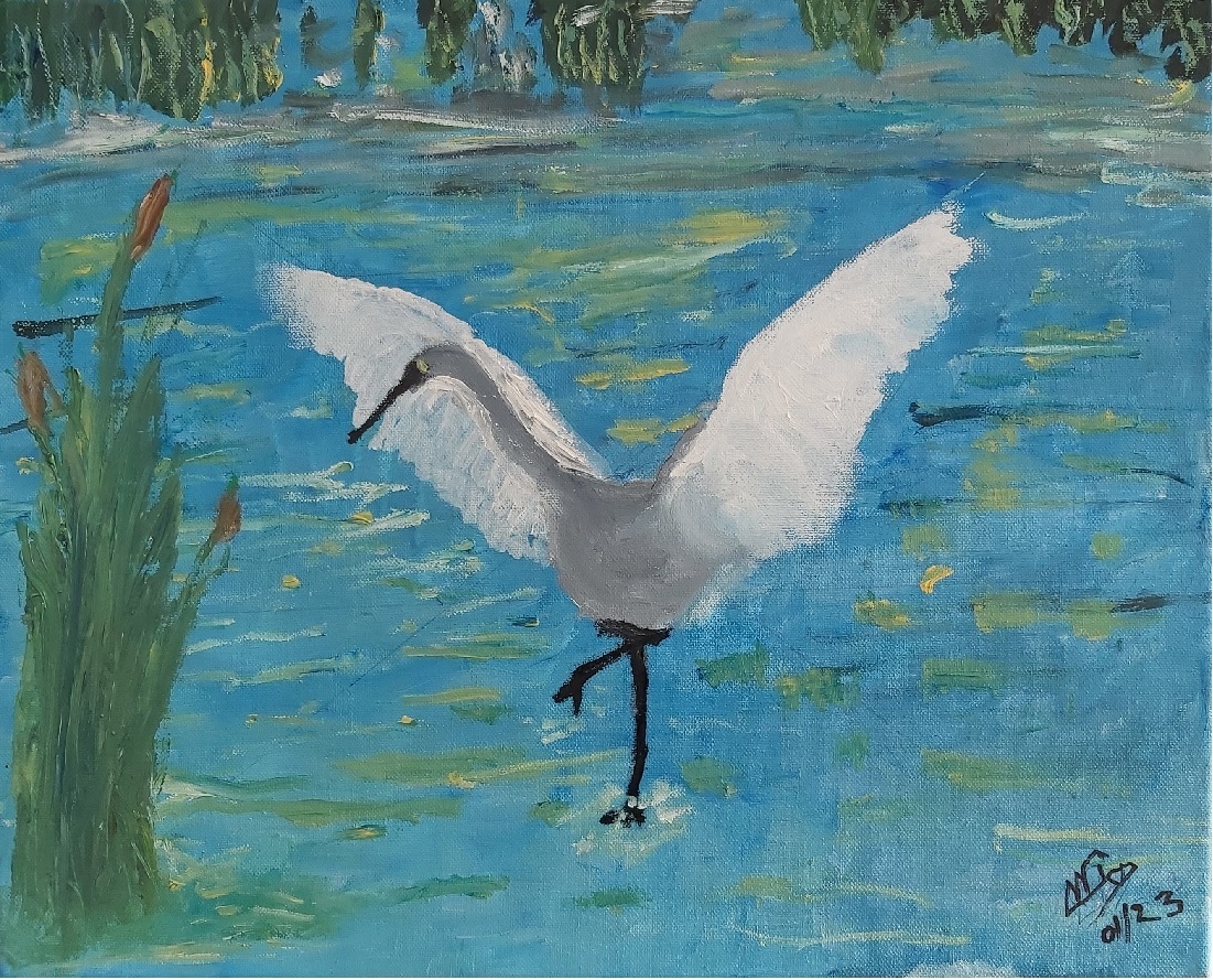Héron sur mare